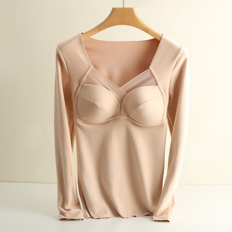 秋冬必備德絨蠶絲保暖衣 內含胸墊免穿文胸 輕鬆塑形 穿上瞬間升溫 貼膚舒適又保暖