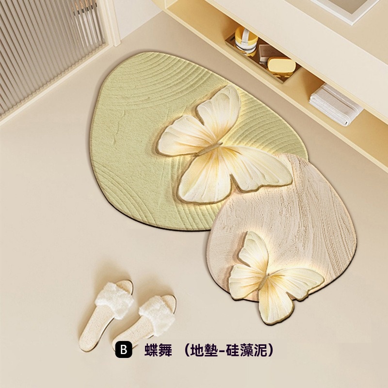 輕奢風防滑蝴蝶地墊,矽藻泥材質,環保無毒,復古優雅,吸水性佳,好看又實用!浴室廚房玄關陽臺都可以鋪上,家裏瞬間就變得非常有檔次~