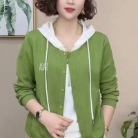2025新款早秋 刺繡假兩件 時尚設計感休閒開衫 洋氣長袖連帽衛衣 時尚百搭 多色可選