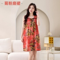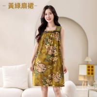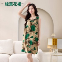2025新款夏季 冰絲空調裙 洋氣減齡 顯瘦遮肉大碼可穿 可居家可外穿 砍袖方領家居裙睡裙